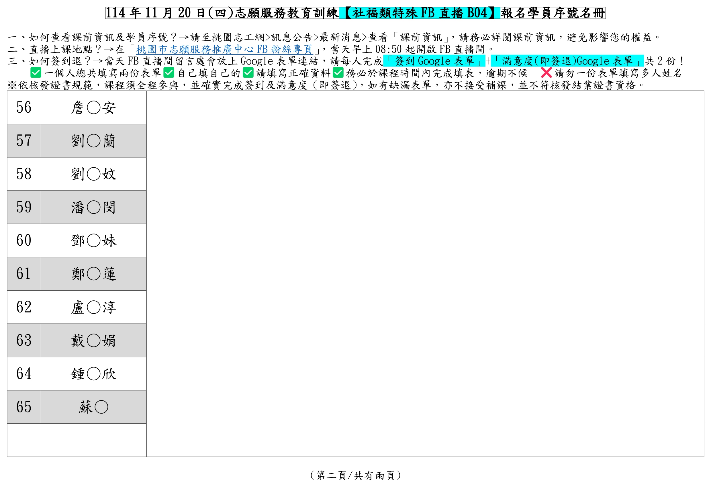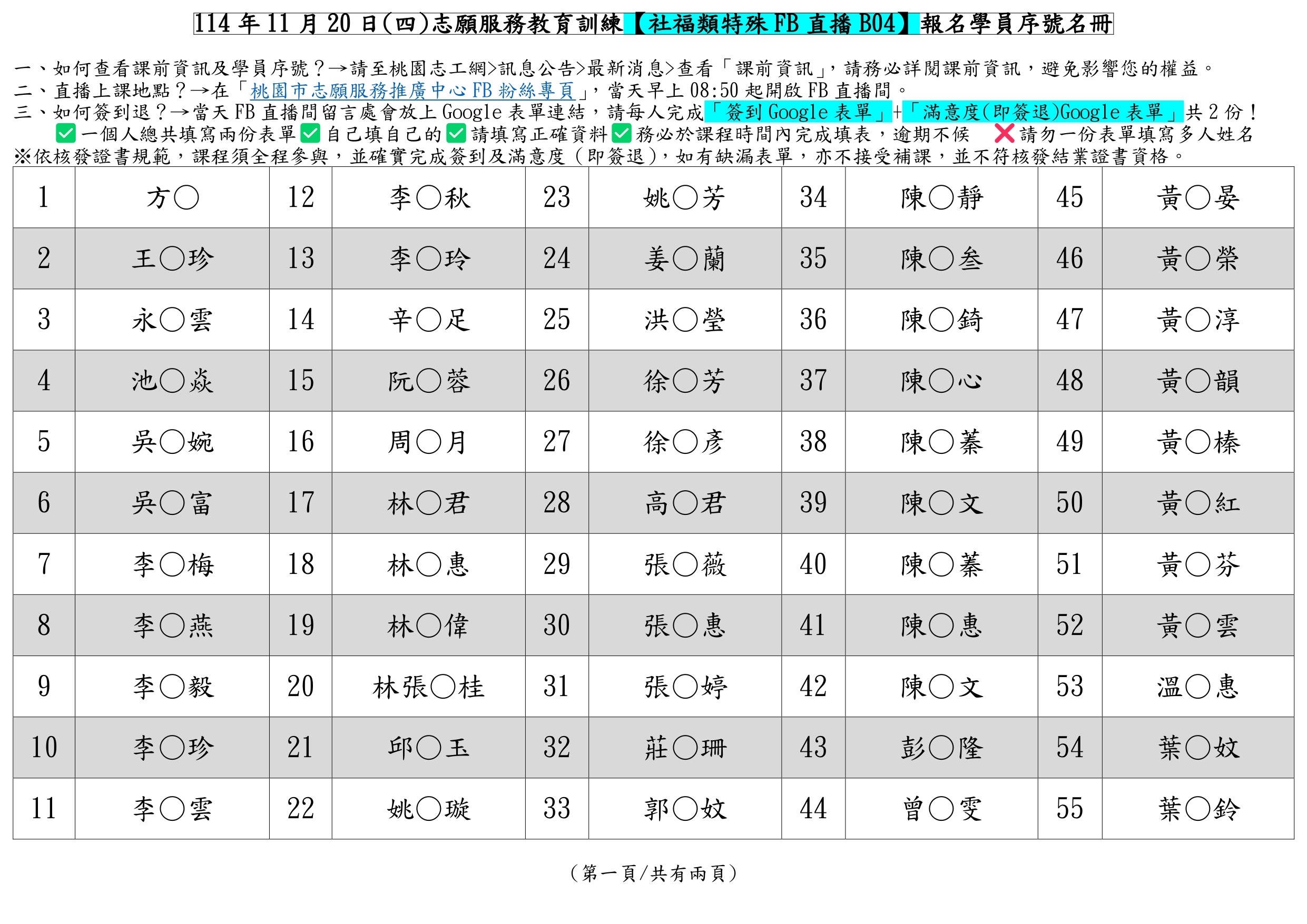 !!請依照學員名冊序號報到,以利加速報到流程!!