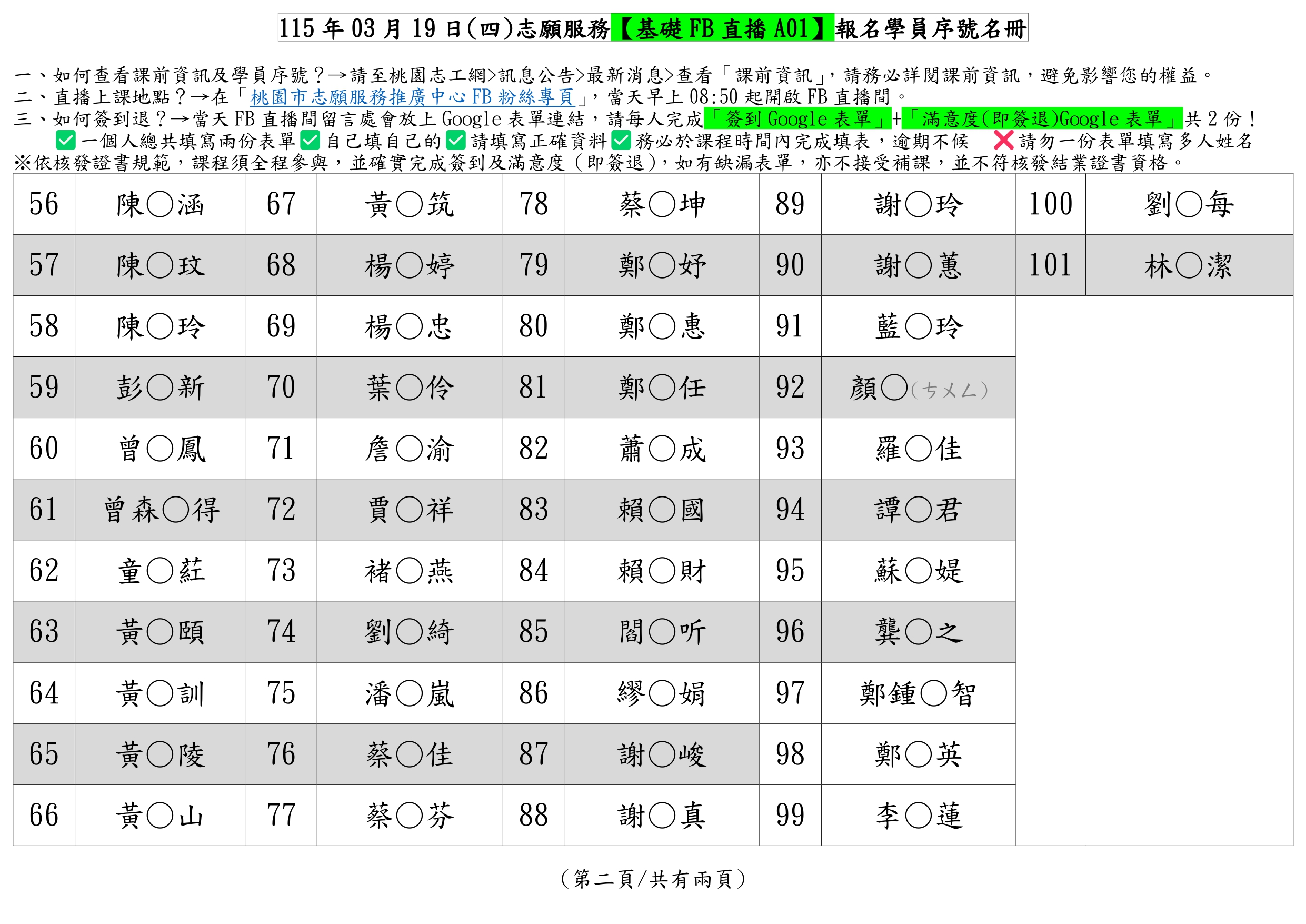 !!請依照學員名冊序號報到,以利加速報到流程!!