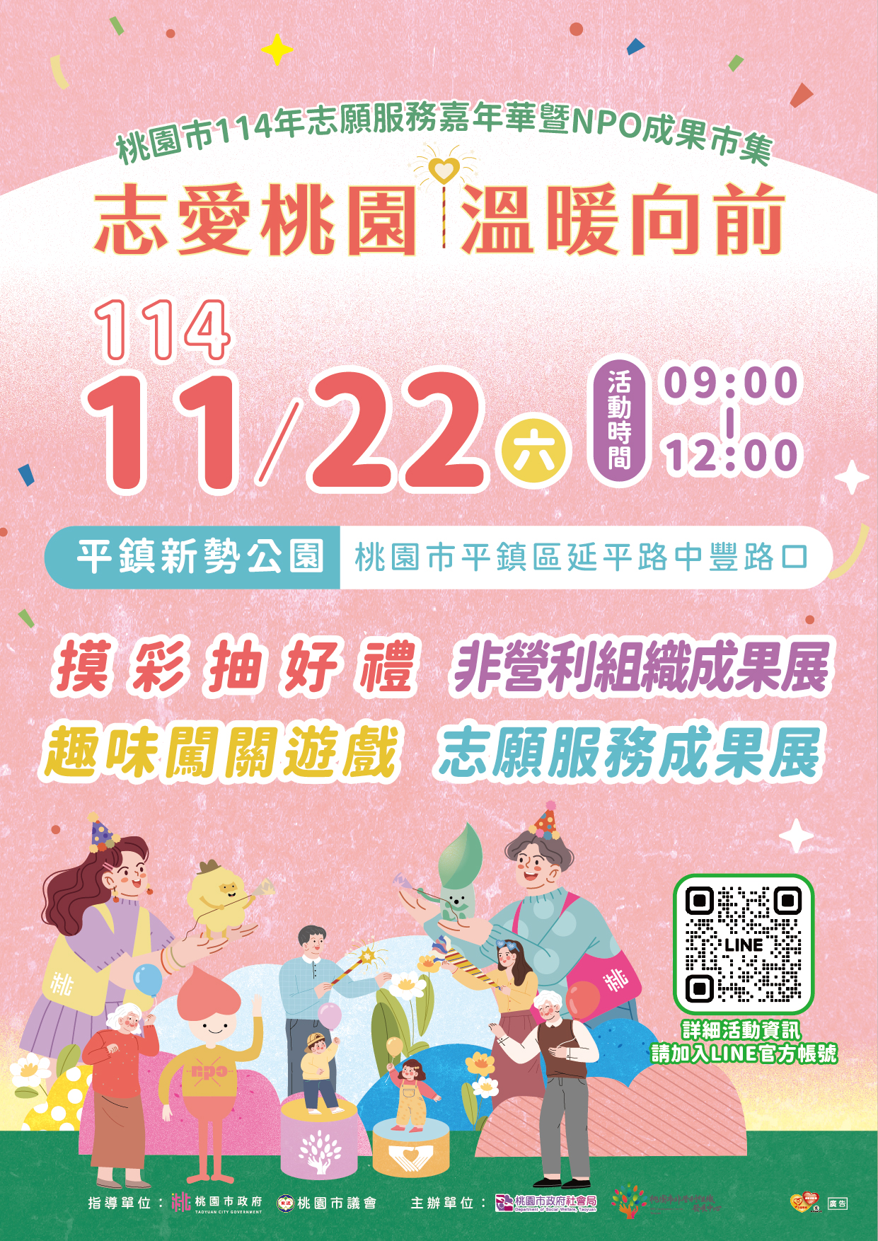 【活動】「志愛桃園 溫暖向前」桃園市114年志願服務嘉年華暨NPO成果市集