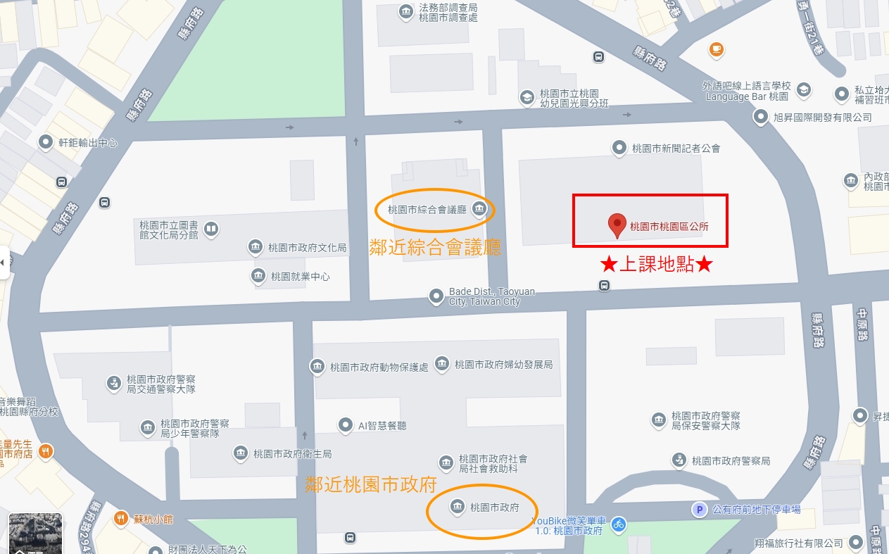 ■開課地點:桃園市桃園區公所 四樓禮堂 (桃園市桃園區縣府路7號4樓)。