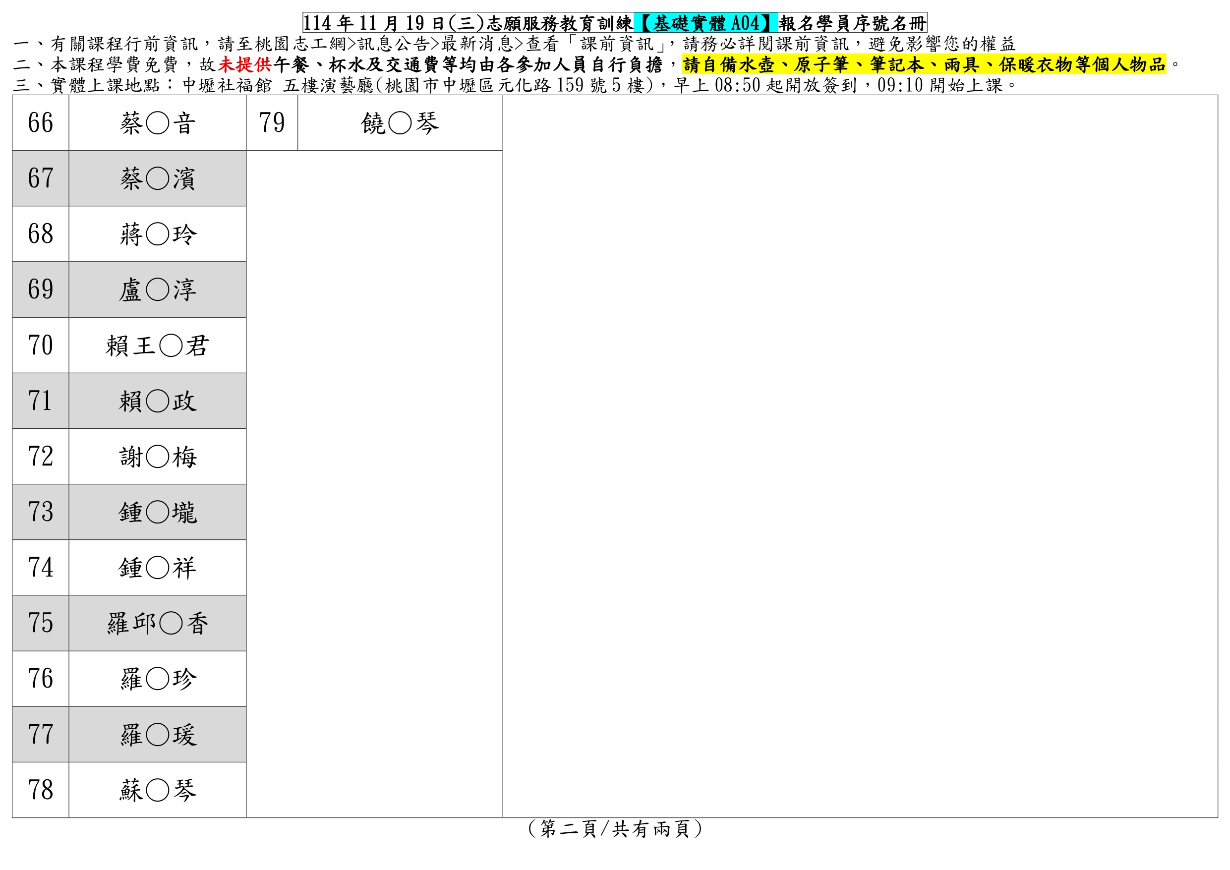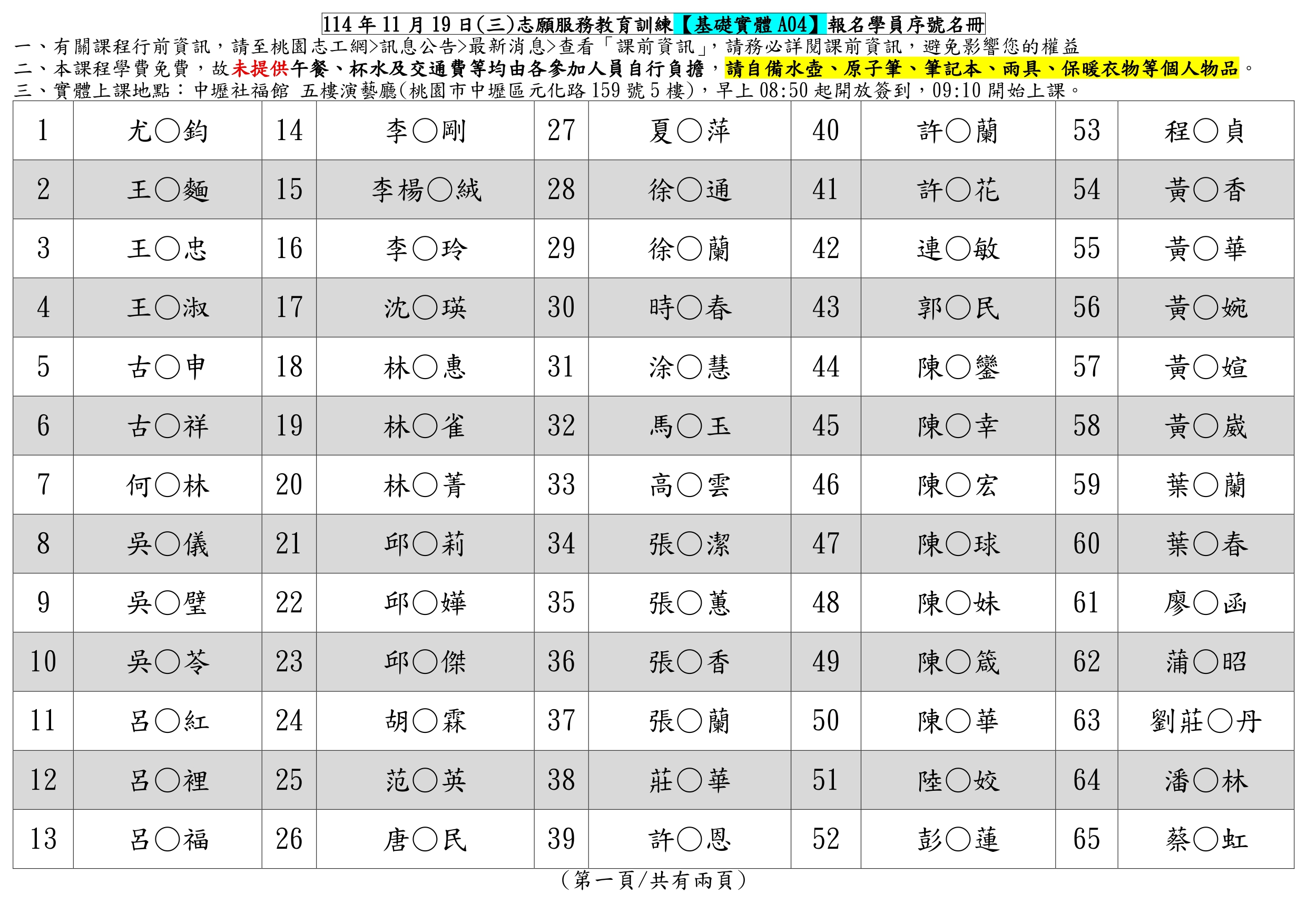 !!請依照學員名冊序號報到,以利加速報到流程!!