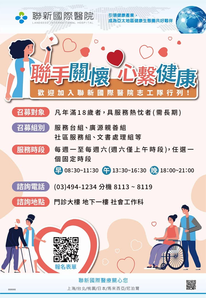 首頁 / 我要當志工 / 平鎮區-醫療衛生類-聯新國際醫院 志工