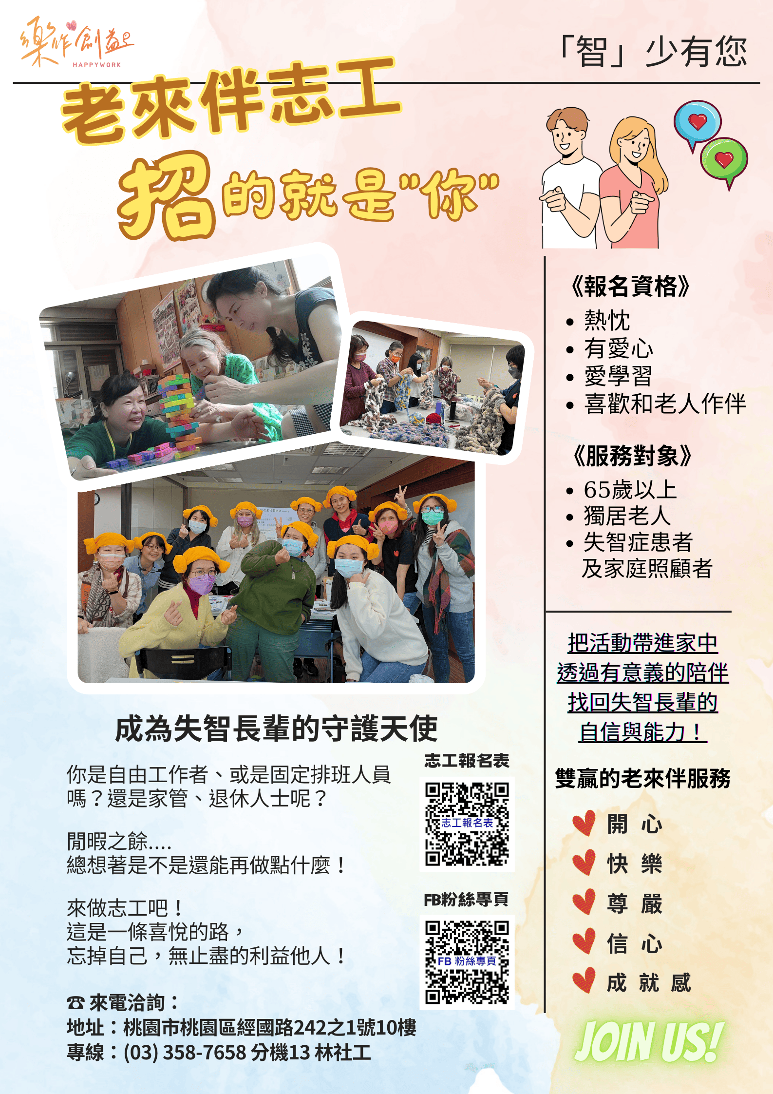 首頁 / 我要當志工 / 老來伴志工招募-失智症陪伴